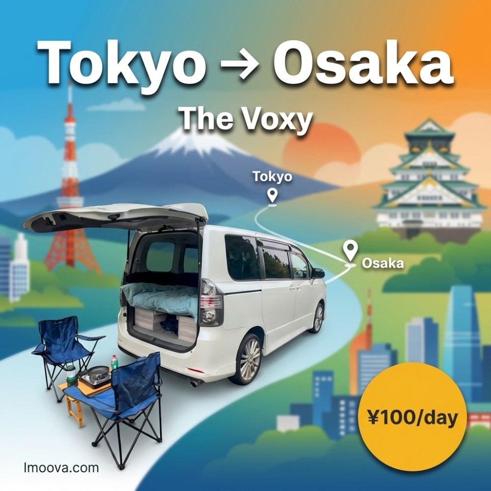 4 + 3 TageThe Voxy verfügbar für Einwegvermietung von Tokyo nach Osaka. Flexible Verlagerung mit 2 Sitzen, Automatisch Getriebe. Ab ¥100 pro Tag.