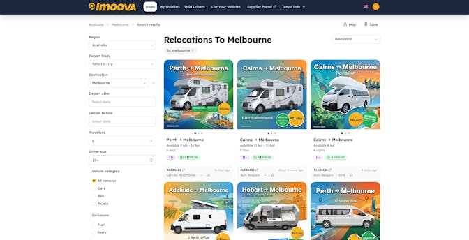 Head to Imoova.com and search by country, route, or dates. You can also filter deals that include ferry or fuel reimbursements. Deals are updated daily depending on demand. You can also use our app, which is available on the Apple App Store & Google Play.