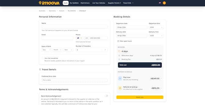 Unlike many platforms, Imoova operates on a first-come, first-served basis so if you see a deal, grab it.