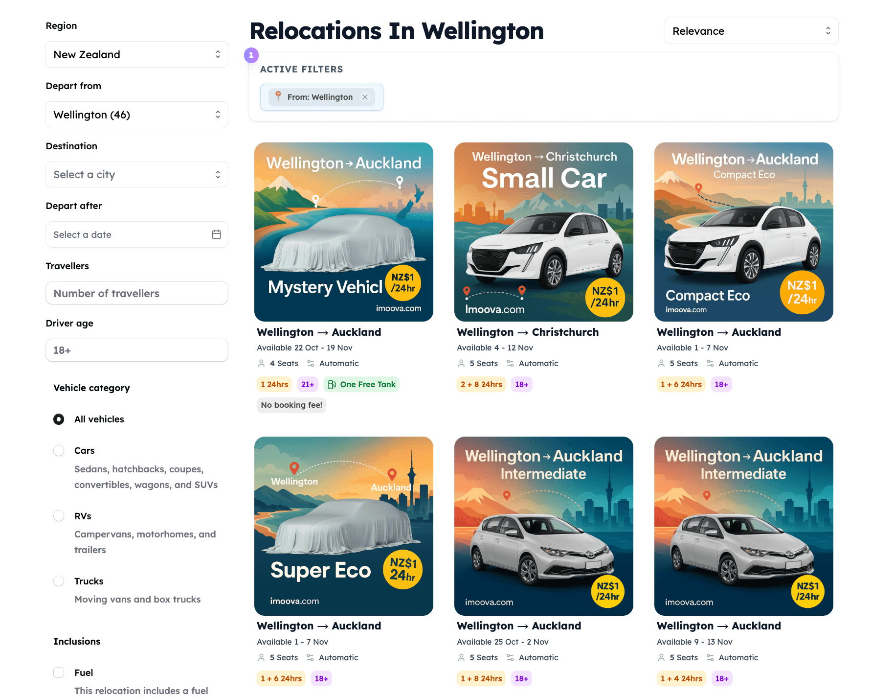 Imoova connects travellers with vehicles that need relocating across New Zealand. Rental companies save on transport — and you get a car or campervan for as little as $1/day, often with some fuel or ferry costs included.
