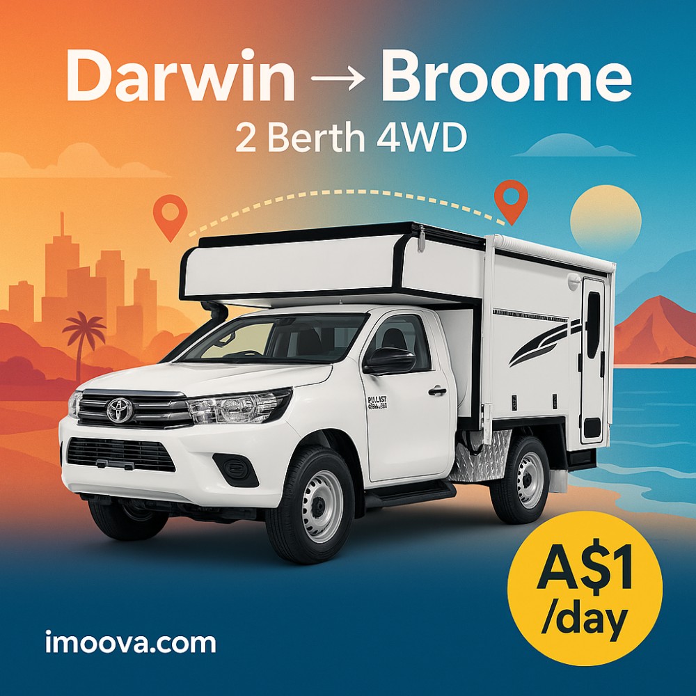 Hit the road from Broome to Darwin with Imoova campervan rentals from $1/day. Explore the Gibb River Road, national parks, waterfalls & outback towns.