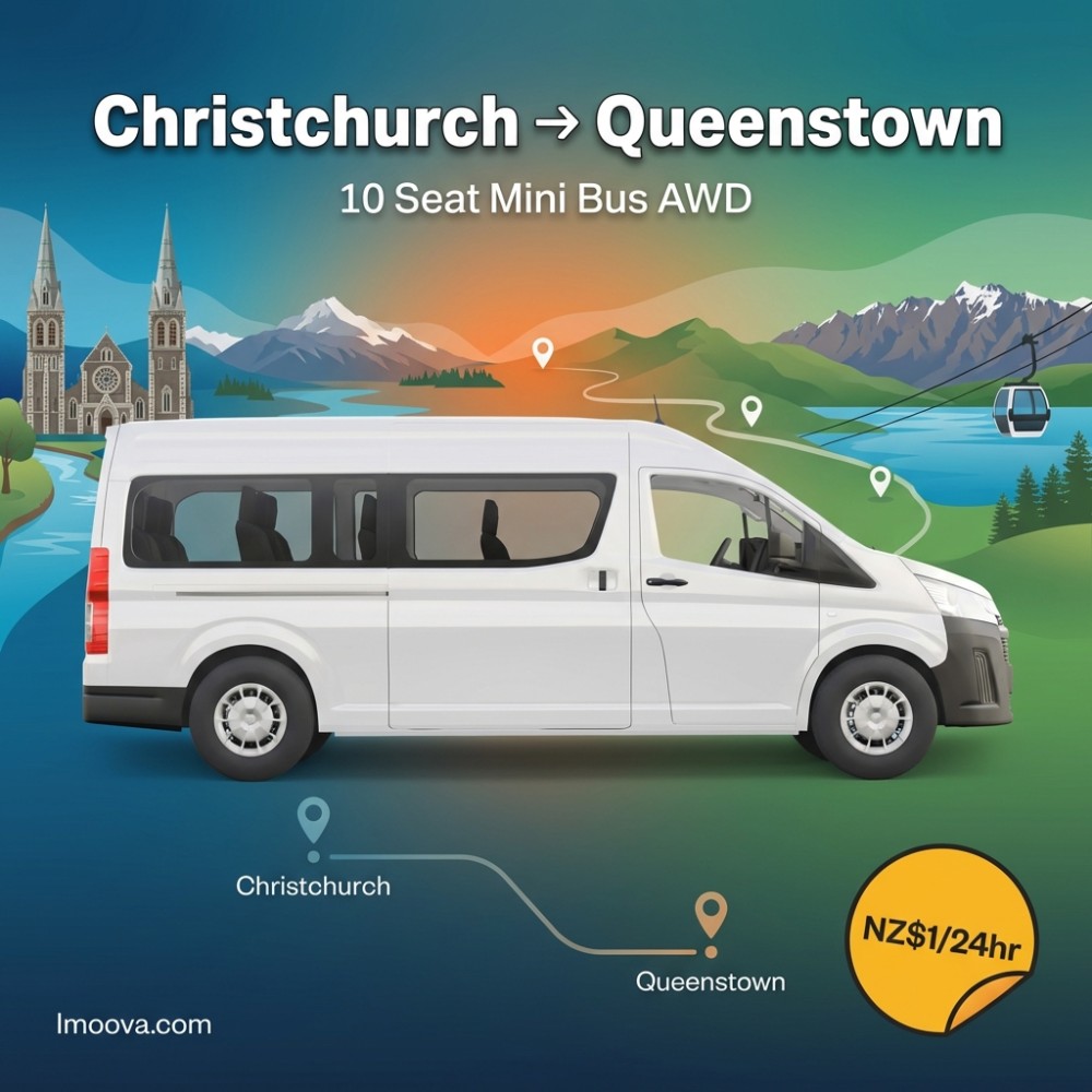 Ideal for large families, groups, and team trips, our AWD mini buses combine spacious comfort with cost-effective travel. They are easy to drive and offer ample room for up to ten passengers, making them great for holidays, sports events, and business travel. Pick up and drop off your AWD minibus rental in either Christchurch or Queenstown.