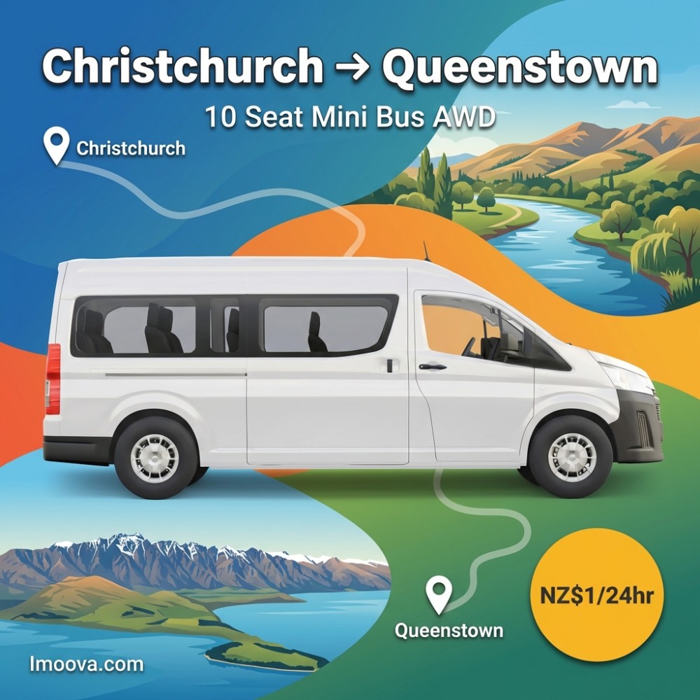 Ideal for large families, groups, and team trips, our AWD mini buses combine spacious comfort with cost-effective travel. They are easy to drive and offer ample room for up to ten passengers, making them great for holidays, sports events, and business travel. Pick up and drop off your AWD minibus rental in either Christchurch or Queenstown.