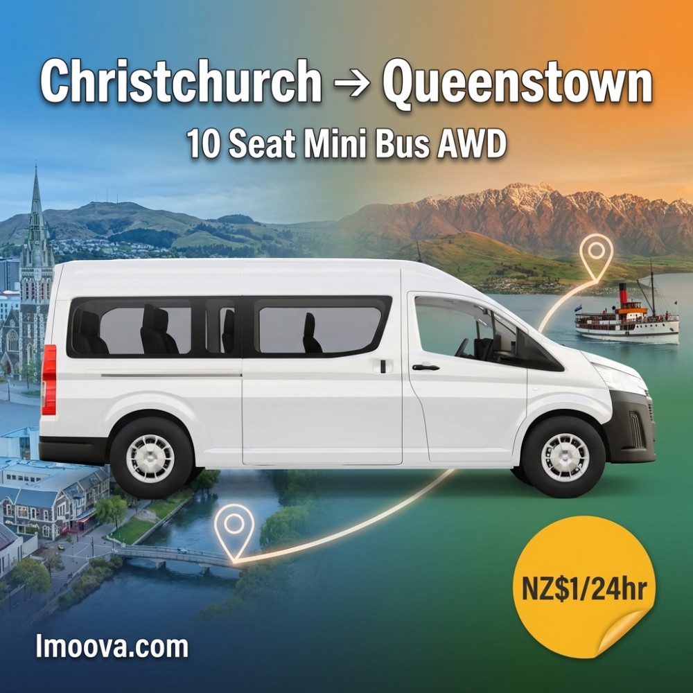 Ideal for large families, groups, and team trips, our AWD mini buses combine spacious comfort with cost-effective travel. They are easy to drive and offer ample room for up to ten passengers, making them great for holidays, sports events, and business travel. Pick up and drop off your AWD minibus rental in either Christchurch or Queenstown.