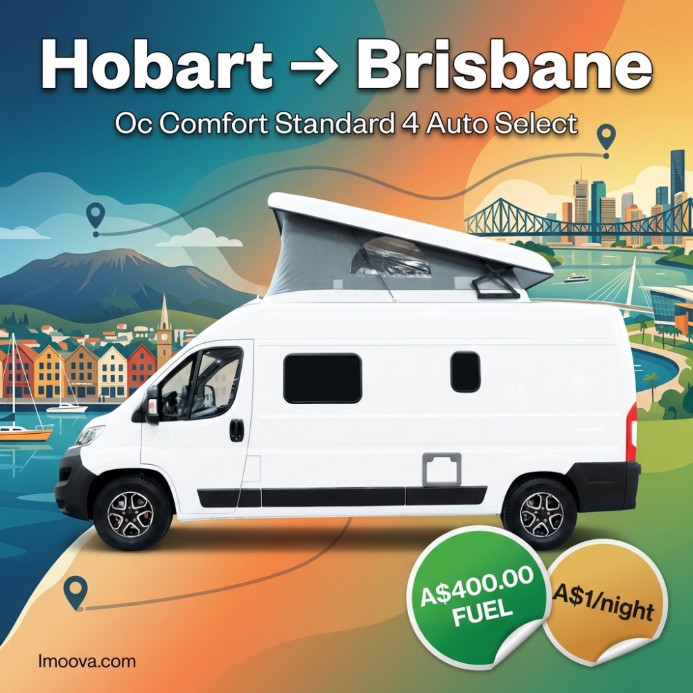 7 + 3 nights21+A$400.00Oc Comfort Standard 4 Auto Select available for one-way rental from Hobart to Brisbane. Flexible relocation with 4 seats, Automatic transmission. Starting A$1.00 per night.