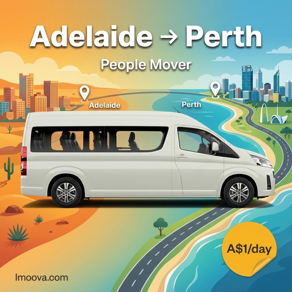 11 SeatsAutomatic5 days21+People Mover available for one-way rental from Adelaide to Perth. Flexible relocation with 11 seats, Automatic transmission. Starting A$1.00 per day.