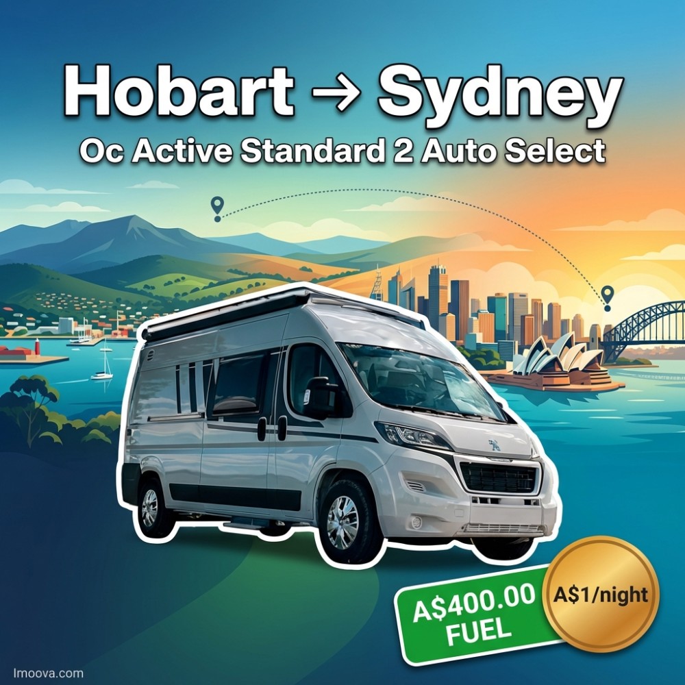 5 + 3 nights21+A$400.00Oc Active Standard 2 Auto Select available for one-way rental from Hobart to Sydney. Flexible relocation with 4 seats, Automatic transmission. Starting A$1.00 per night.