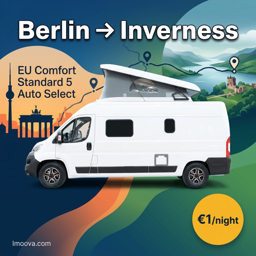 6 + 3 nights21+EU Comfort Standard 5 Auto Select available for one-way rental from Berlin to Inverness. Flexible relocation with 5 seats, Automatic transmission. Starting €1.00 per night.
