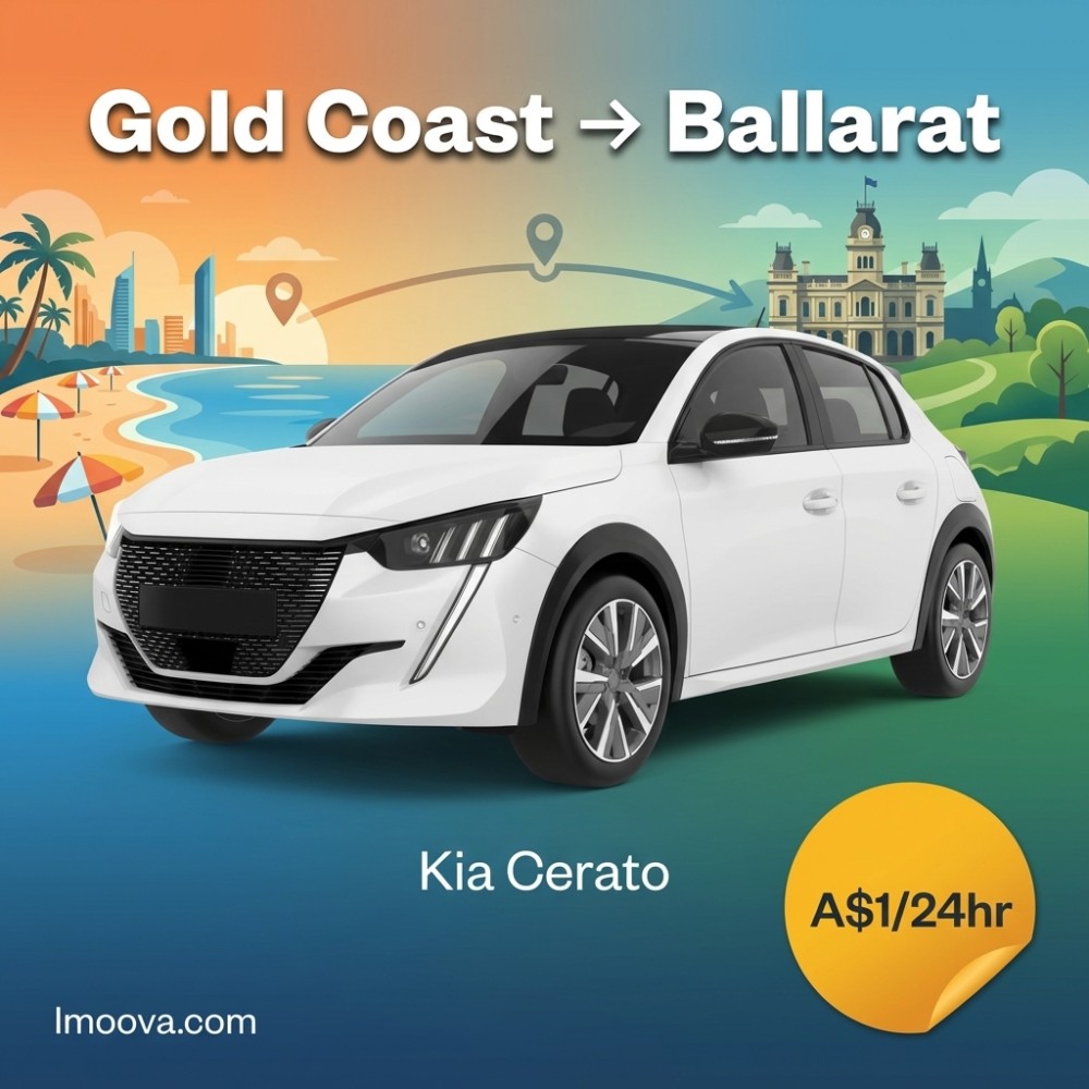 3 x24hrsKia Cerato available for one-way rental from Gold Coast to Ballarat. Flexible relocation with 5 seats, Automatic transmission. Starting A$1.00 per 24hr.
