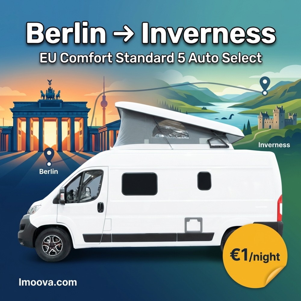 6 + 3 nights21+EU Comfort Standard 5 Auto Select available for one-way rental from Berlin to Inverness. Flexible relocation with 5 seats, Automatic transmission. Starting €1.00 per night.
