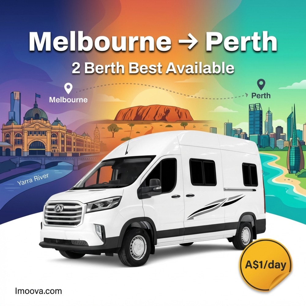 7 + 1 días21+2 Berth Best Available disponible para alquiler de ida desde Melbourne hasta Perth. Reubicación flexible con 2 asientos, transmisión Automático. Desde A$1.00 por día.