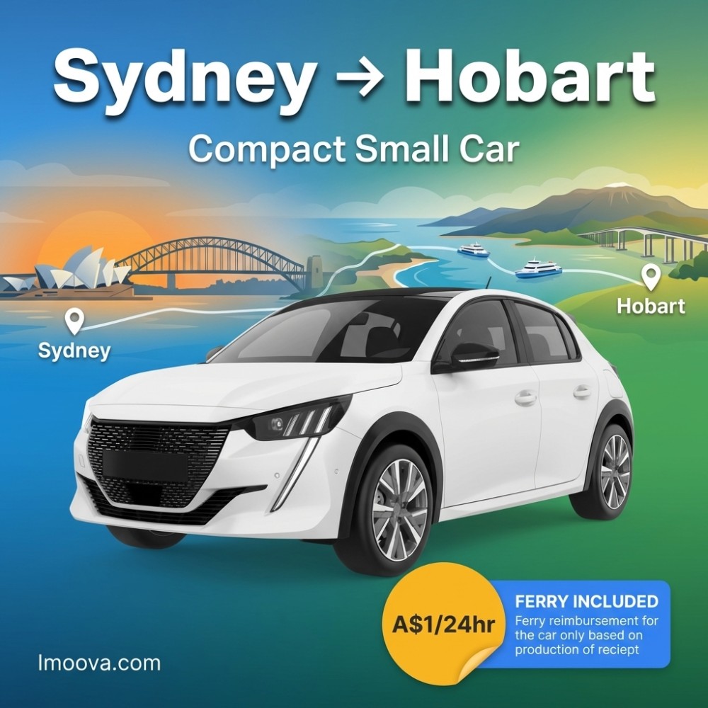 5 SiègesAutomatique3 + 1 x24hrs21+ Ferry IncludedCompact Small Car disponible à la location à sens unique de Sydney à Hobart. Relocation flexible avec 5 sièges, transmission Automatique. À partir de A$1.00 par 24h.