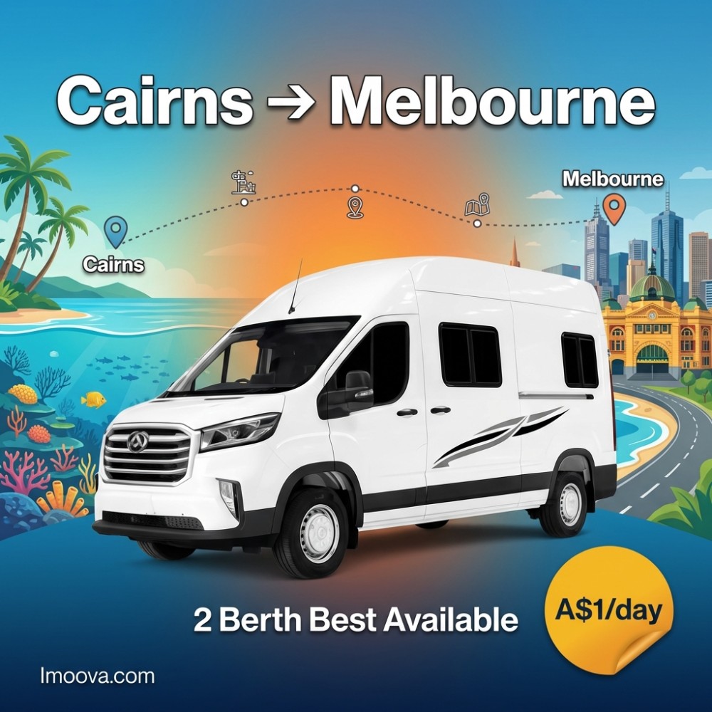 7 + 1 giorni21+A$100.002 Berth Best Available disponibile per noleggio one-way da Cairns a Melbourne. Trasloco flessibile con 2 posti, trasmissione Automatico. A partire da A$1.00 per giorno.