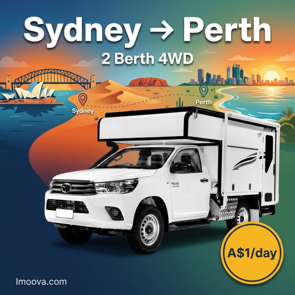 8 + 1 日 21+A$100.002 Berth Best AvailableがSydneyからPerthへの片道レンタル可能。2席の柔軟な移動、オートマチックトランスミッション。日あたりA$1.00から。
