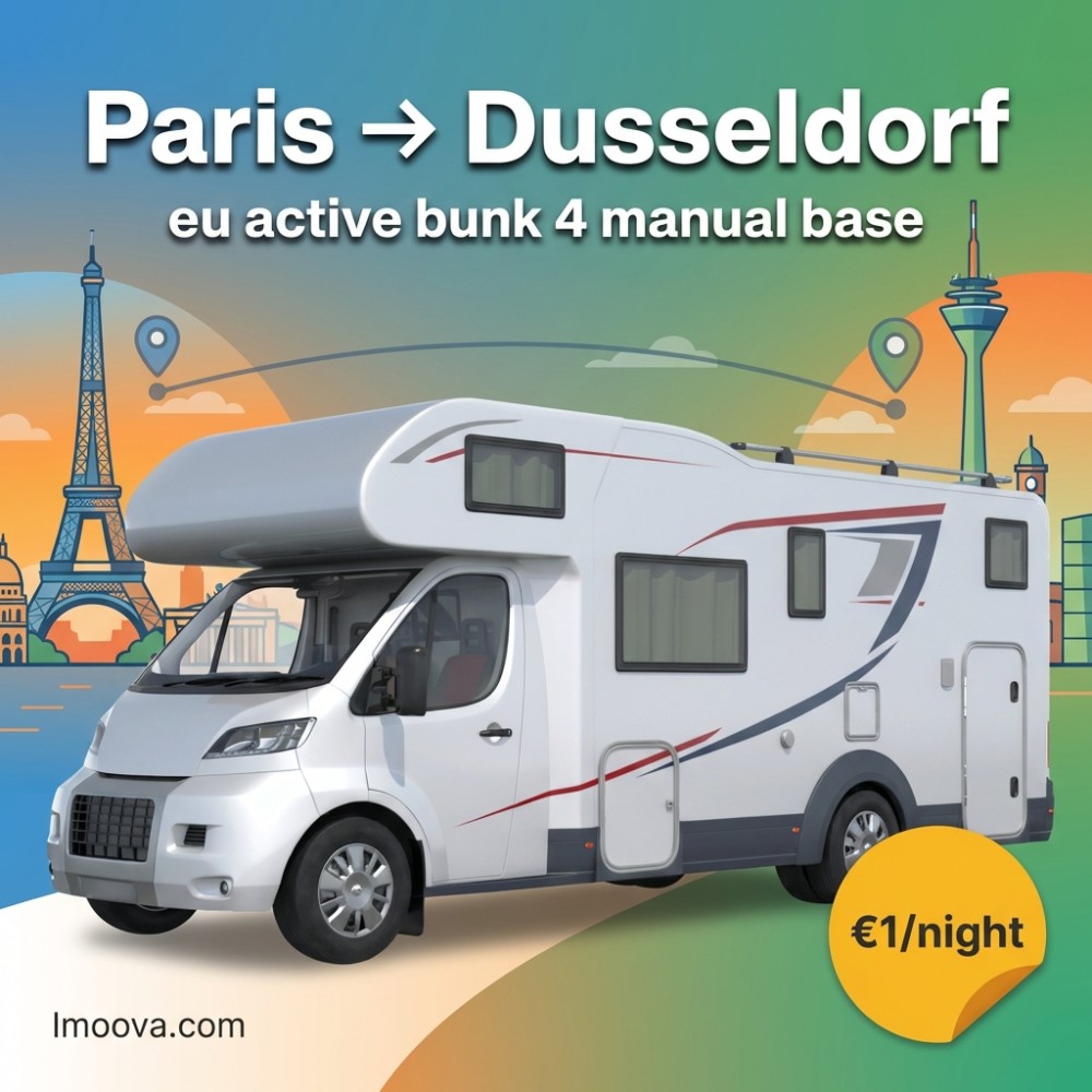 2 + 3 noites21+eu active bunk 4 manual base disponível para aluguel de ida de Paris para Dusseldorf. Relocação flexível com 4 assentos, transmissão Manual. A partir de €1.00 por noite.