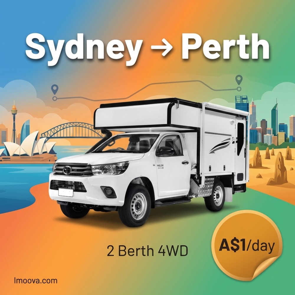 8 + 1 dias21+2 Berth 4WD disponível para aluguel de ida de Sydney para Perth. Relocação flexível com 2 assentos, transmissão Automático. A partir de A$1.00 por dia.